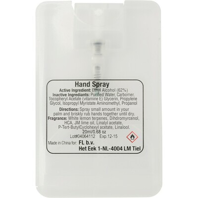 Antybakteryjny płyn do rąk z 62% alkoholem, w pojemniku w kształcie karty kredytowej, 20 ml