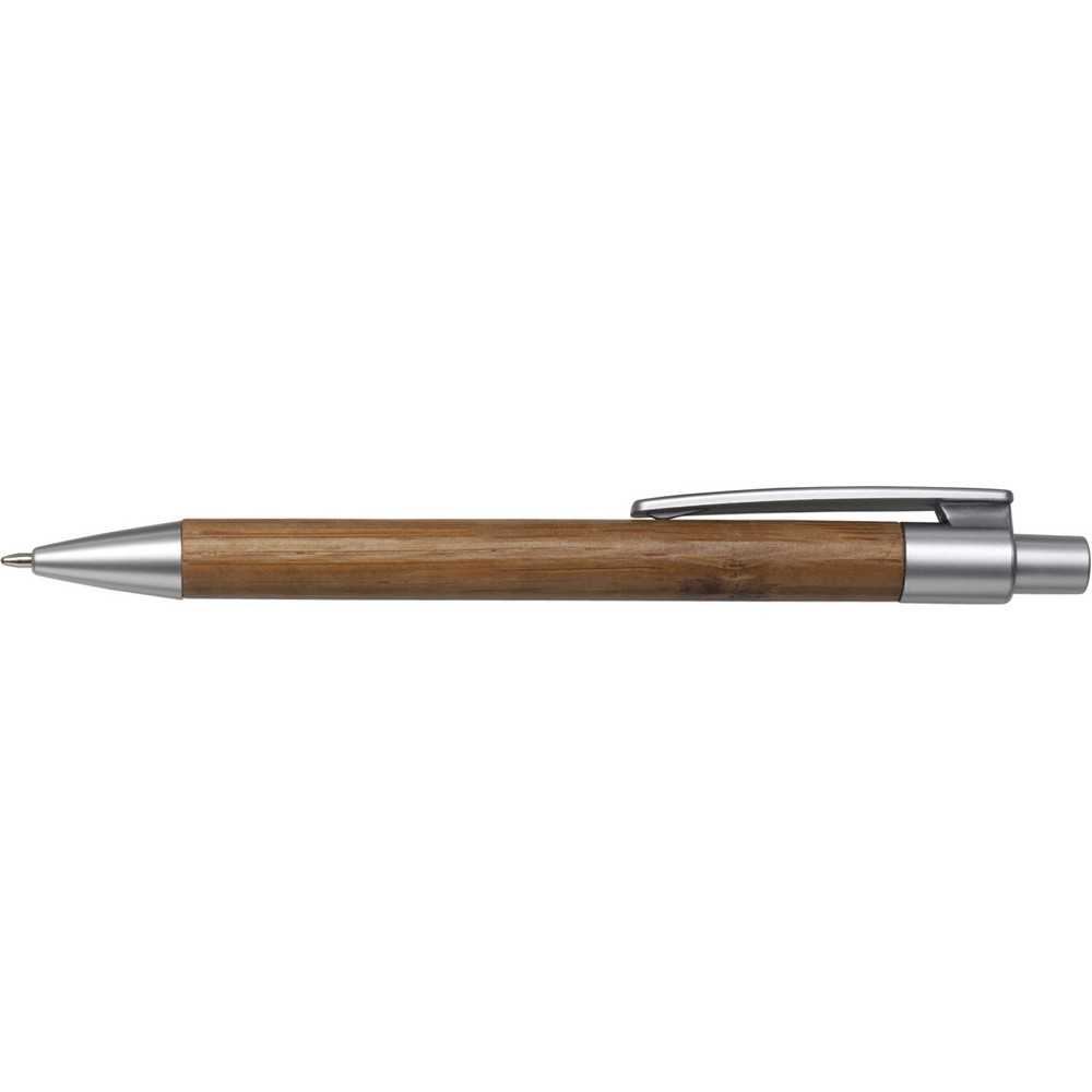 Długopis z bambusowym trzonem i plastikowymi kolorowymi elementami