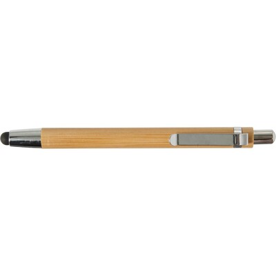 Bambusowy długopis, touch pen, ze srebrnym klipem i końcówką