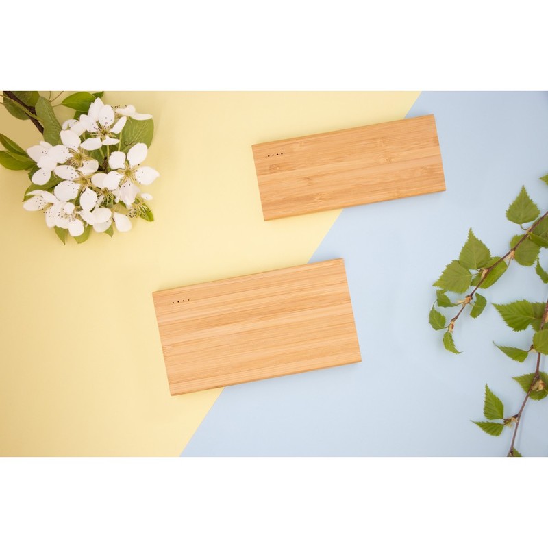 Bambusowy power bank B’RIGHT 8000 mAh, 4 diody wskazujące poziom naładowania, wejście micro USB 5V/2A, 9V/2A, 12V/1.5A oraz USB-C, wyjście USB 3.0 5V/3A,9V/2A, 12V/1.5A oraz USB-C 5V/3A, 9V/2A, 12V/1.5A do ładowania dwóch urządzeń jednocześnie, kabel micro USB oraz USB typ C w komplecie