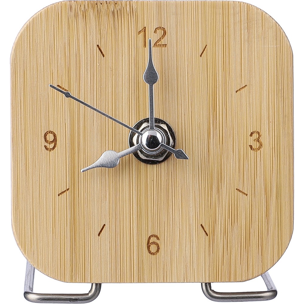 Bambusowy zegar na biurko, zawiera baterię, produkt wykonany z bambusa, metalu i plastiku