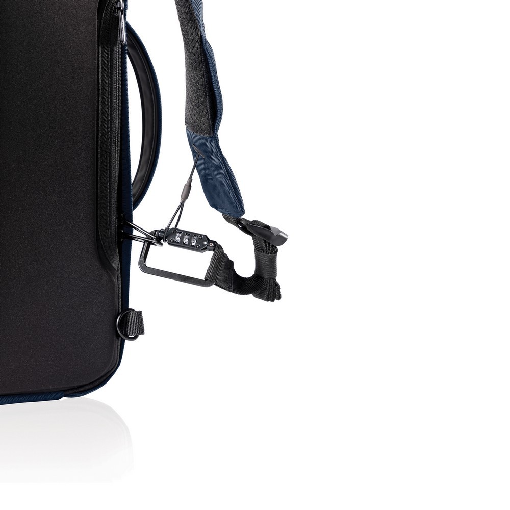 Plecak na laptopa 16”, torba, ukryte kieszenie wewnątrz, przegroda na tablet do 12,9”, wykonany z materiału odpornego na przecięcie, metalowa rama wewnątrz, kieszeń z ochroną RFID, przestronna przegroda główna, zintegrowana kłódka, posiada znacznik AWARE™, który gwarantuje, że wykorzystane materiały pochodzą z recyklingu
