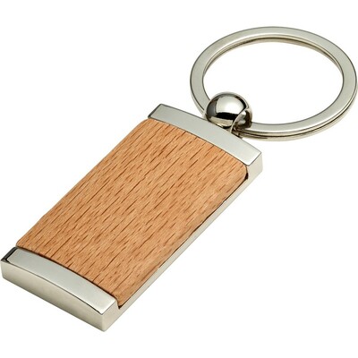 Prostokątny brelok do kluczy z elementem z drewna bukowego