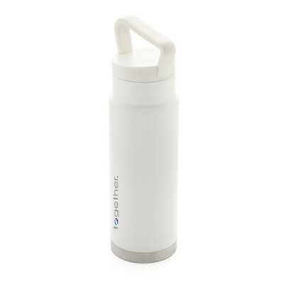 Butelka termiczna 650 ml, podwójne ścianki ze stali nierdzewnej z próżnią pomiędzy, zakrętka z uchwytem, utrzymuje temperaturę napojów gorących do 20 godzin oraz zimnych do 15 godzin