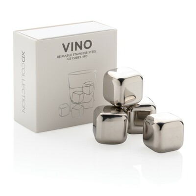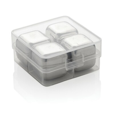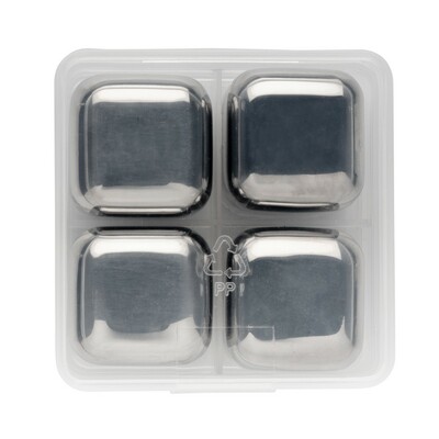 Zestaw chłodzących kostek do napojów 4 el., pozwalają na schłodzenie napoju bez jego rozcieńczania, wykonane ze stali nierdzewnej, kostki należy umieścić na 3 godziny w zamrażarce przed użyciem, w pudełku, ślad węglowy produktu: 1,57 kg CO2