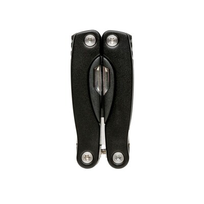 Narzędzie wielofunkcyjne, wykonane z aluminium, uchwyt z czarnymi detalami, 14 funkcji, czarny pokrowiec 600D w komplecie, ślad węglowy produktu: 2,53 kg CO2