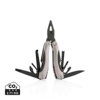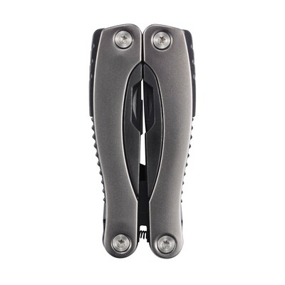 Narzędzie wielofunkcyjne, wykonane ze stali nierdzewnej o czarnym odcieniu, uchwyt z anodyzowanego aluminium, 14 funkcji, czarny pokrowiec w komplecie, ślad węglowy produktu: 2,71 kg CO2