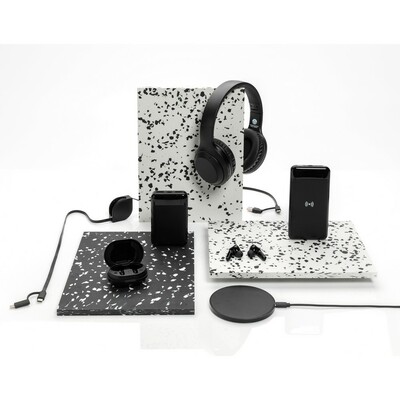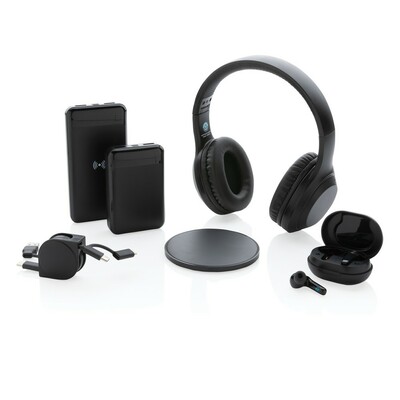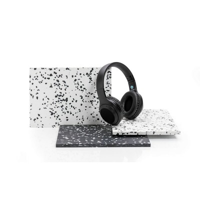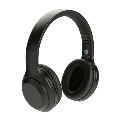 Słuchawki bezprzewodowe, składane, funkcja odbierania połączeń, wbudowany mikrofon, obudowa wykonana z ABS pochodzącego z recyklingu, posiadają certyfikat RCS (Recycled Claim Standard), który jest stosowany gdy produkt jest wykonany częściowo lub w całości z materiałów pochodzących z recyklingu, akumulator o pojemności 200 mAh umożliwia odtwarzanie muzyki do 6 godzin, ponowne ładowanie w 1,5 godziny, zasięg do 10 m, pokrowiec w komplecie, kabel w komplecie, nie zawiera PVC, ślad węglowy produktu: 1,01 kg CO2