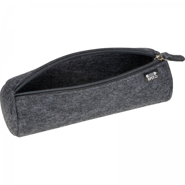 Piórnik wykonany z filcu pochodzącego z recyklingu, zamykany na zamek.