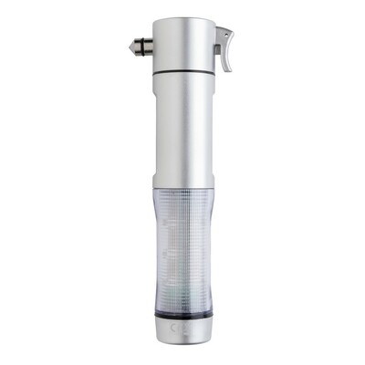 Latarka bezpieczeństwa, obudowa wykonana z ABS, 1 biała dioda LED oraz 9 czerwonych migających na boku, przecinak do pasów, młotek bezpieczeństwa, magnetyczna podstawka do przymocowania do karoserii samochodu, ślad węglowy produktu: 1,29 kg CO2