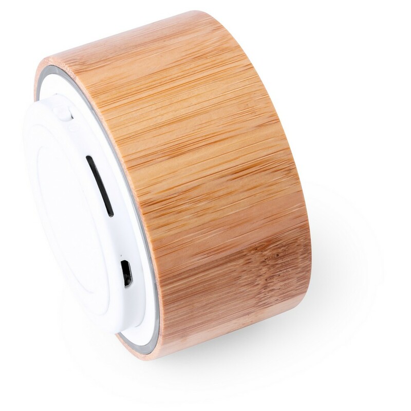 Głośnik bezprzewodowy 3W, BT 5.0, wykonany z bambusa, aluminium i tkaniny, wbudowany subwoofer poprawiający wydajność basów, akumulator o pojemności 400 mAh umożliwia odtwarzanie muzyki do