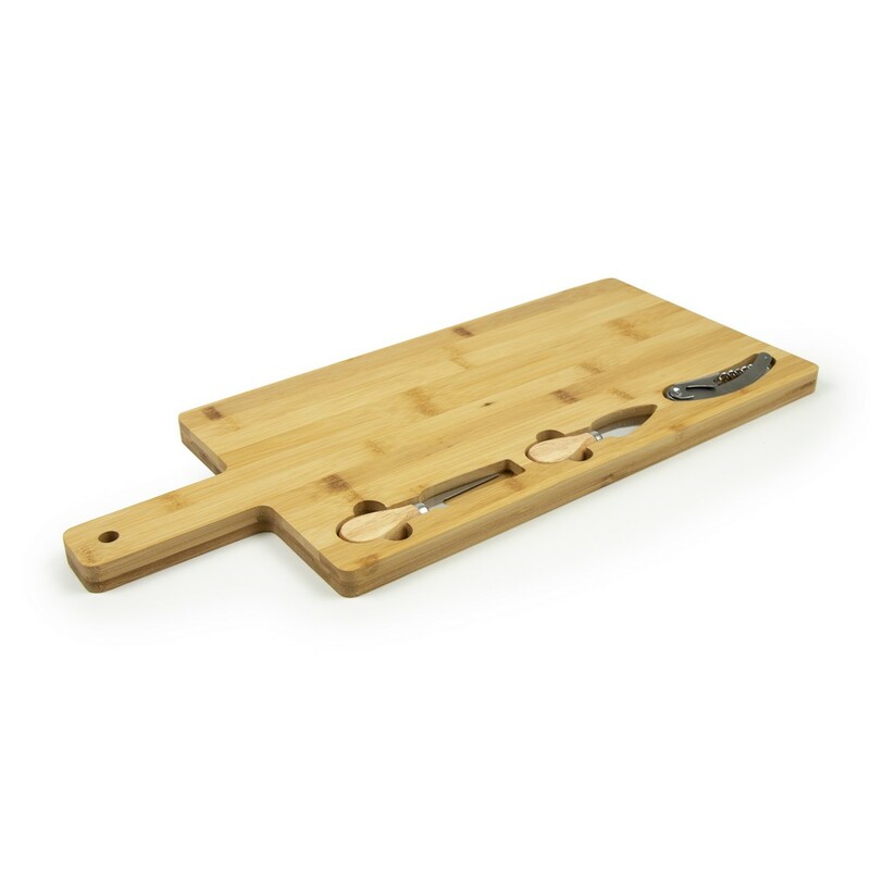 Zestaw do sera, bambusowa deska do sera, widelec i nóż do sera oraz nóż kelnerski